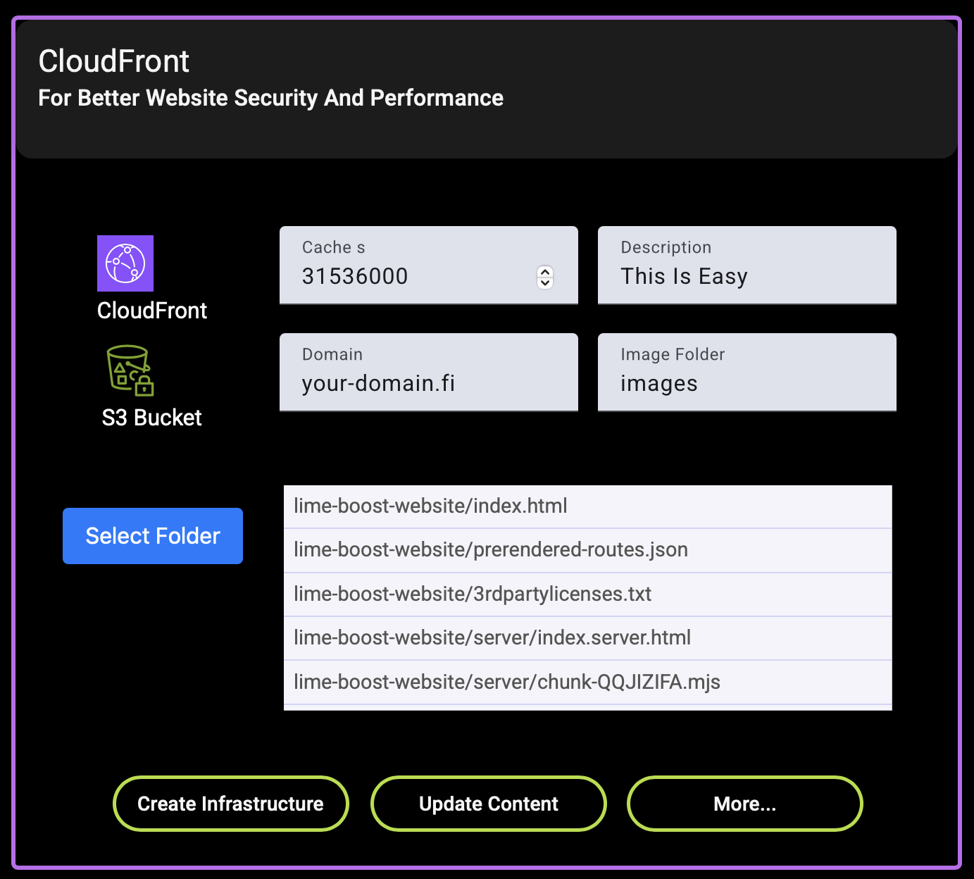 Lime Boost creates a modern scalable serverless infrastructure for your frontend application. It's safe. It's fast all over the world.